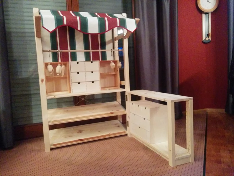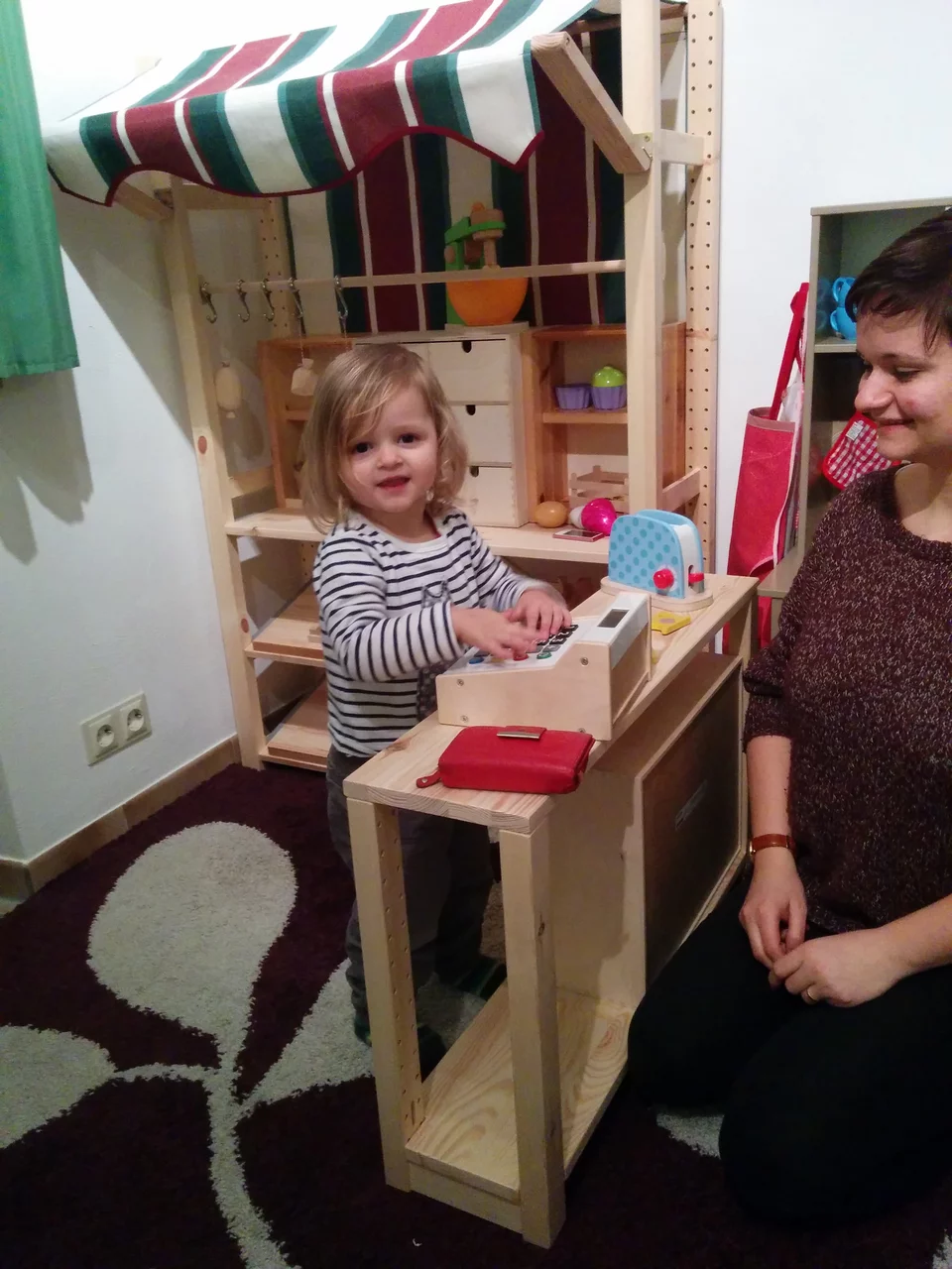 Für Enkelin Charlotte bauten wir einen Kaufladen, den sie und ihre kleinen Brüder jahrelang eifrig bespielt haben.